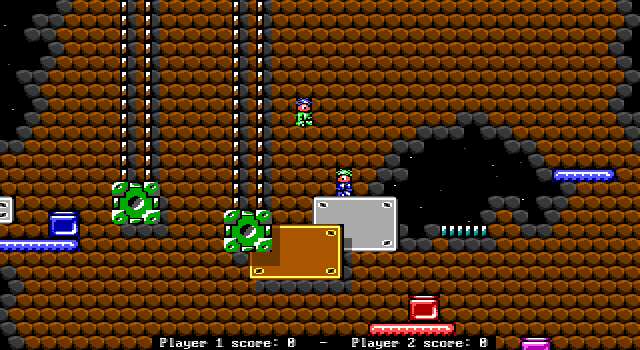 A simplistic 2-player game. Each player plays a spiky-haired guy that can jump really high. The objective is to jump on your opponent's head as many times as possible within whatever limit you decide upon (since the game simply goes on forever). Jumping physics are okay, though it's odd that you only get points when you actually start a jump from the top of the other guy's head (so if he moves out from under you before you jump, the point is denied).