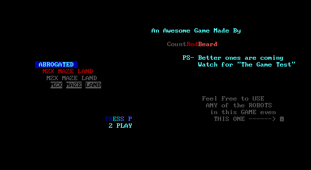 The remake of the MZX Classic! Abrogated MZX Maze Land was made in order to improve the already fantastic MZX Maze Land. However it cuts off a whole chunk of the game and replaces it with sentient signs. Gone are the amazing bomb dropping robots at the beginning. Non-existent is the gloomy, creepy first area.