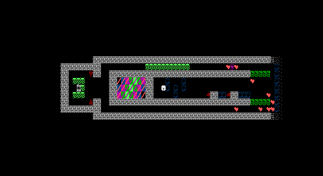 There's one other plus side: some of the level layouts are pretty cool, and the object graphics look about as good as you can fit in an 8x14 space. Minimal sound (PC speaker) and no music, which is kinda fitting.