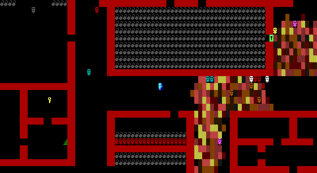 Graphics are very basic, almost all solid tiles for the environments. At least the character set was edited. Also there's no music and the sound effects are all stock PC speaker effects. Not good, but not bad enough to be offensive.