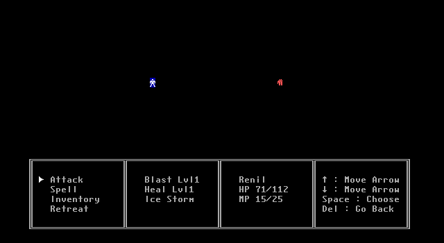 The one-on-one battle system is pretty well-done for its time! It's clunky, but doesn't feel nearly as clunky as the one in Doomsday Dream Legend. Unfortunately nearly all of the battles are dead simple. Most of the enemies can be killed in 1-2 turns and do very little damage.