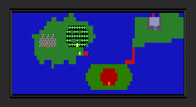 This game is old (around '96 according to the file's date), and it shows. The graphics are plain (though there are non-default chars and fonts), the sound is PC speakers only, Caverns music is used, and the gameplay is standard moving and shooting (and I guess spellcasting, but it's actually possible to play the game without pressing the S key).