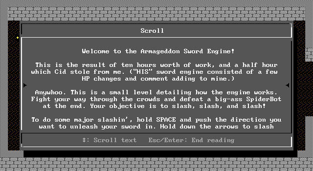 This is the best darned sword engine ever. If anybody must have a game with a sword in it, it must use this engine, or else have something totally new and better than this (though it's hard to make much better).