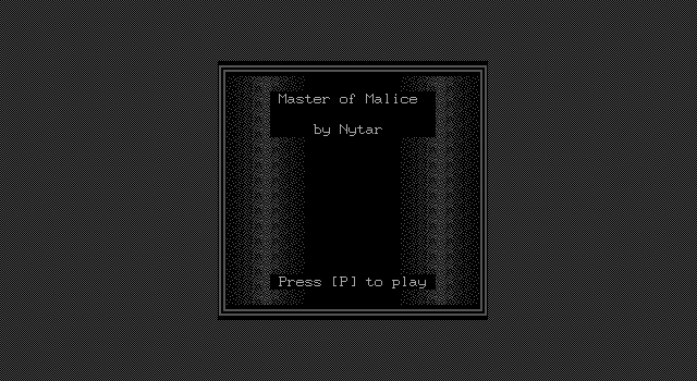 Malice is an "RPG" with a dungeon/exploration context. The battles are menu-based and use the default text box and message line. It's a bit slow. I recommend setting the game to MZX speed 3 for maximum enjoyment, and not just for the battles. This game's is dungeon is massive, and walking through it takes a long time. You'll have to explore blindly and backtrack once you find new items. On speed 3, though, the game is more exciting and more playable. You get some cool spells along the way, and some items. Still too easy--I think I beat it without dying once.