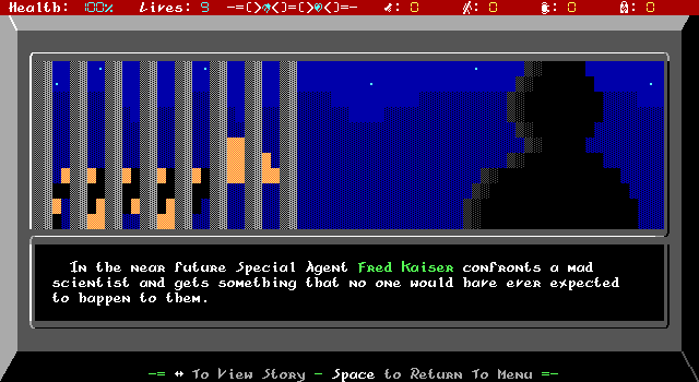 A game Inmate was workingon but decided to ditch it, you take role as a guy who's DNA has been fused with that of a tiger. The game features a simple overhead board with a little action, a few story based boards and a platformer board. The game is mostly nothing but engines, good for reference for new members to MZX but otherwise not worth the trouble. Its just another victim to the infamous Demo Curse.