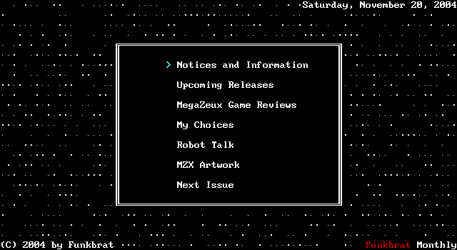 Funkbrat Monthly Issue 2 is more of the same from the first Funkbrat Monthly, except this one has a bunch of obviously incomplete stuff (the overhead jumper engine even has no robots). Also a bunch of the written sections are duplicated from the first "issue." I don't know why this was uploaded..