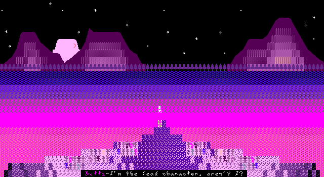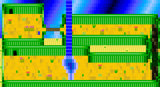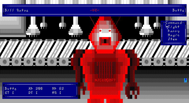 The main highlight of this game is honestly the progression- the game is lengthy (191 boards), has a variety of locations and the sort of branching narrative not seen again until Bernard the Bard in 1998. Broadly speaking, the game has two main 'routes', the branching point being whether or not you try to visit a nondescript cave while heading to another location. If you don't, you get what is essentially the 'canon' story, which is fairly straightforward and covers the quest to get the Japanese video game companies of Squeersoft and Unix to release their games in English. If you do visit the cave, you get a longer, more interesting quest that consists of a sequence of towns and gameplay levels at first, then branches out, letting you explore the larger world and take one of four different paths to the final dungeon- this affects the ending you get, although there isn't always a coherent link, story-wise, between the route you took and the ending you get. The final dungeon is the same for both overall routes and there are a total of five endings- one of the first route and four for the second route.